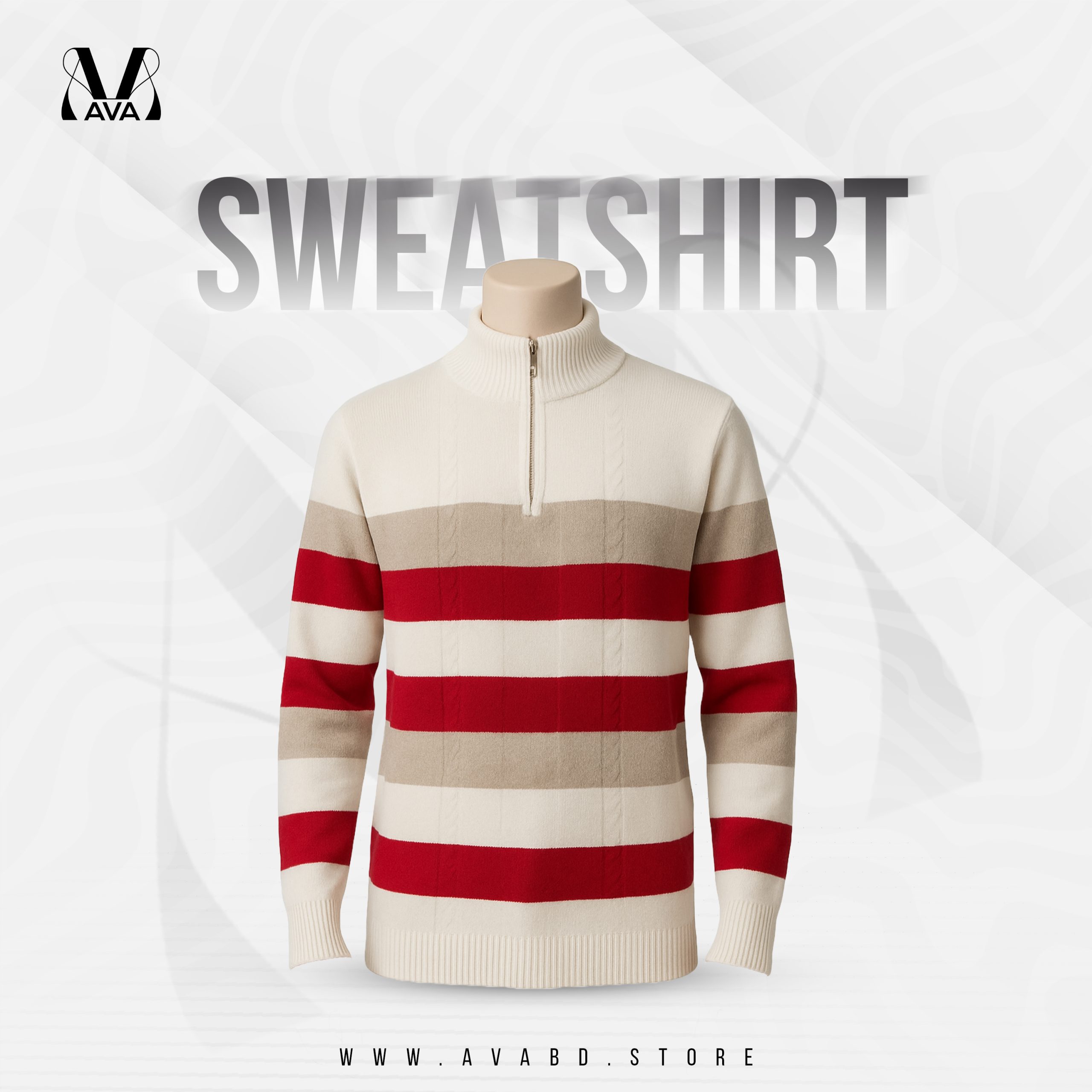 এই সোয়েটারটি ক্লাসিক স্ট্রাইপ আর মডার্ন হাফ-জিপ ডিজাইনের নিখুঁত মিশ্রণ—দেখতেই প্রিমিয়াম, পরতেও আরামদায়ক।